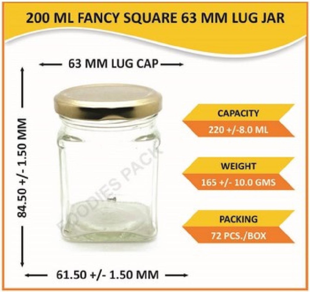200ml fancy square 63mm lug jar