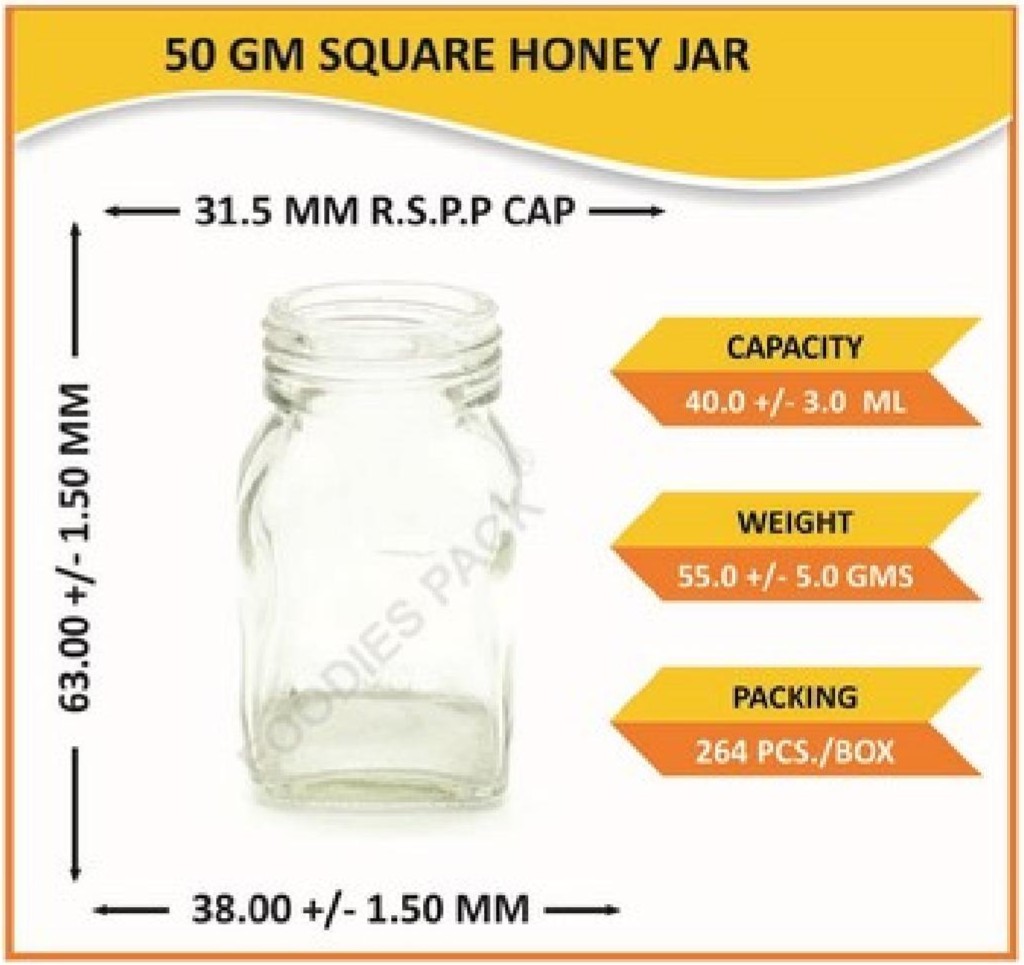 50gm square honey jar