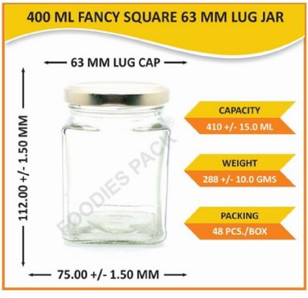 400ml fancy square 63mm lug jar