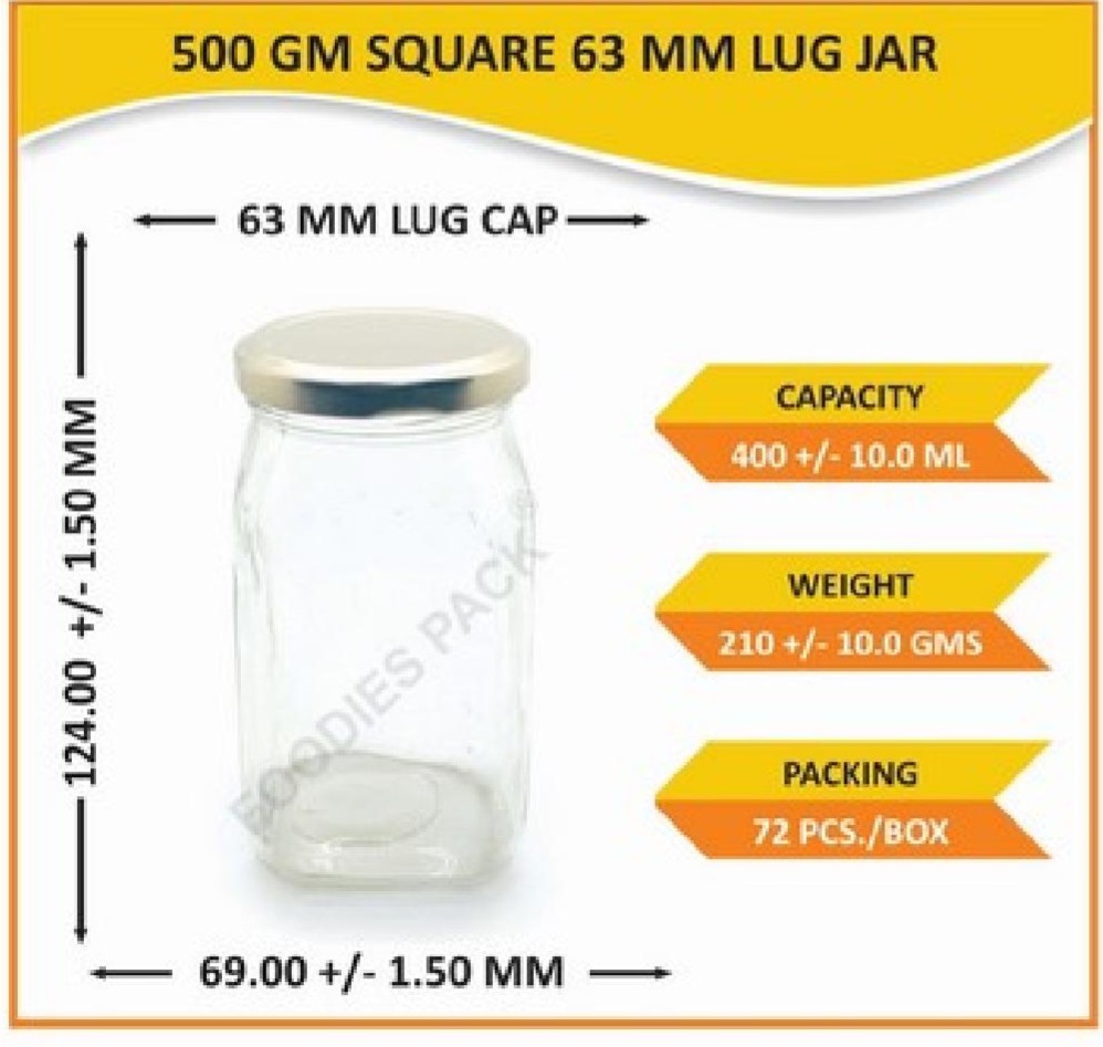 500gm square 63mm lug jar