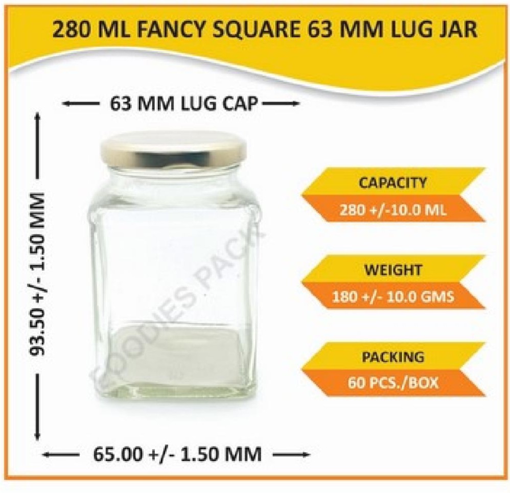 280ml fancy square 63mm lug jar