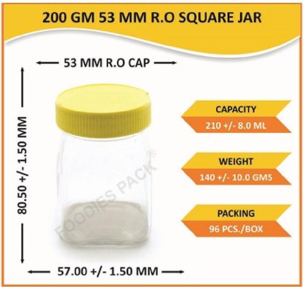 200gm 53mm r.o square jar