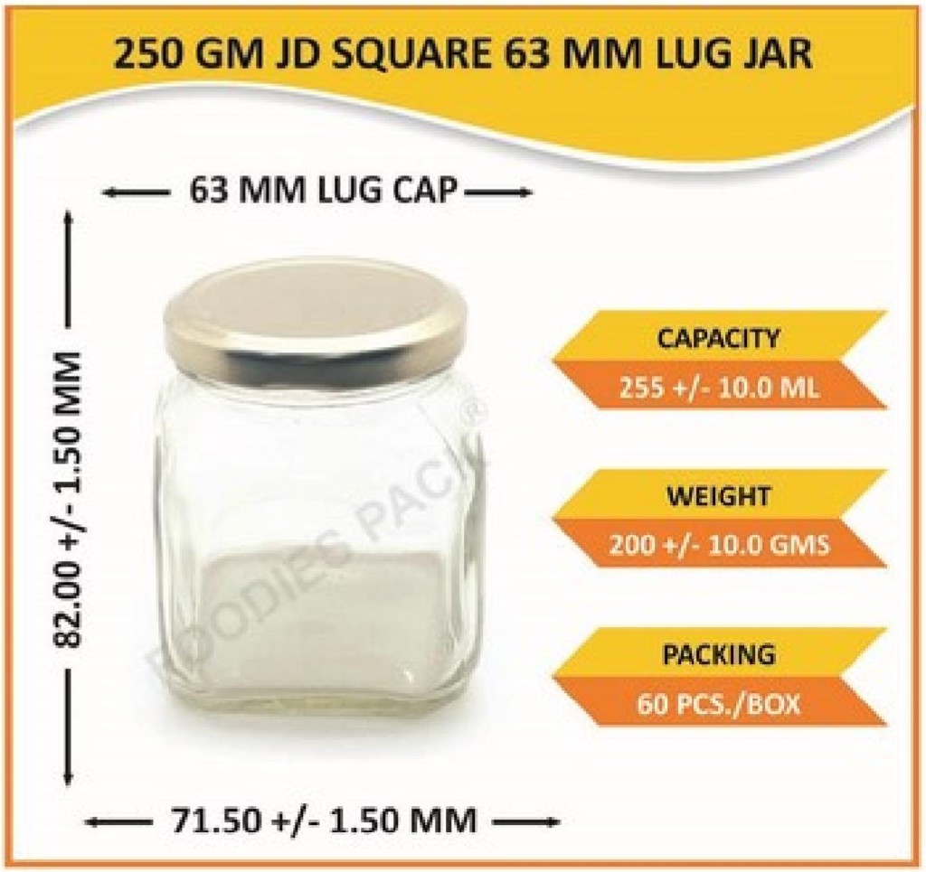250gm jd square 63mm lug jar
