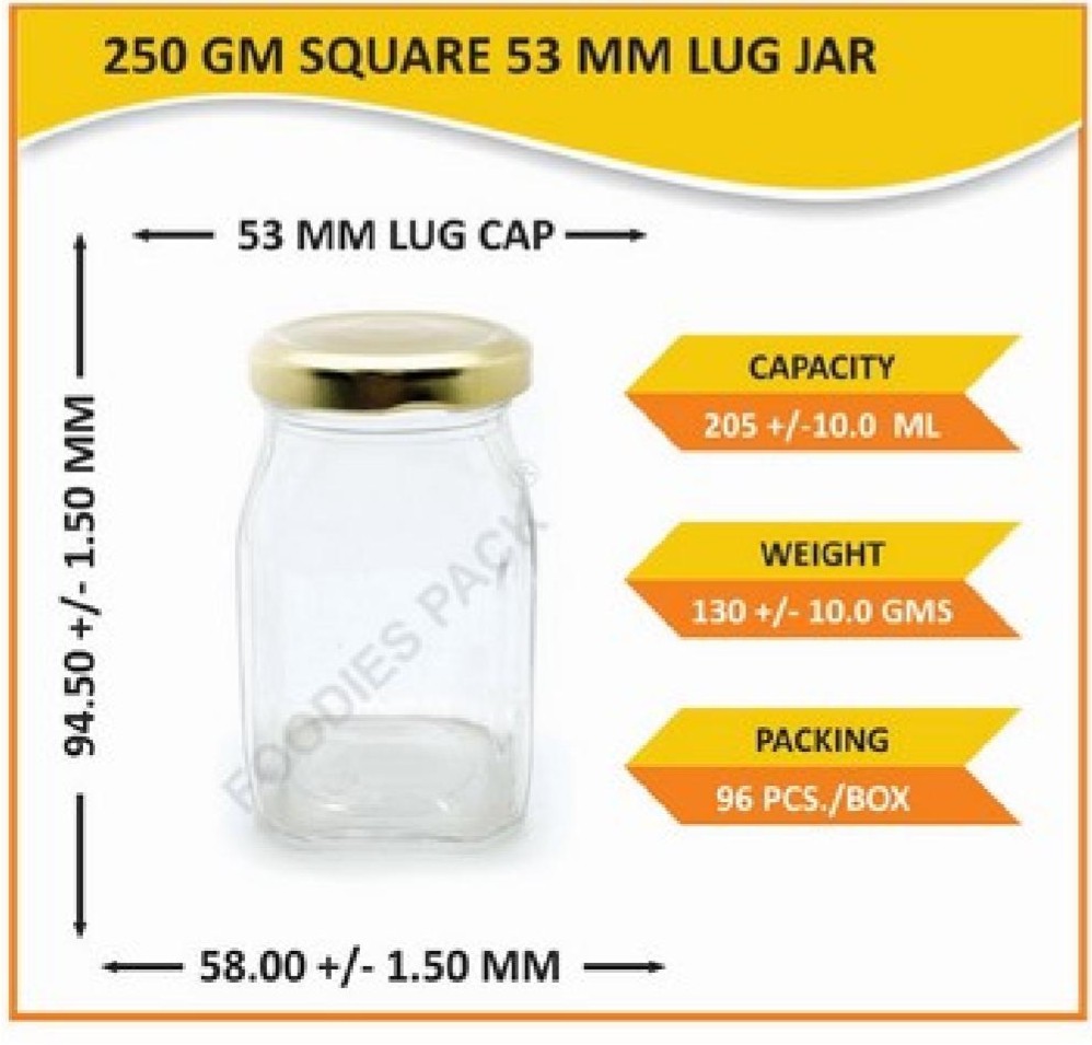 250gm square 53mm lug jar