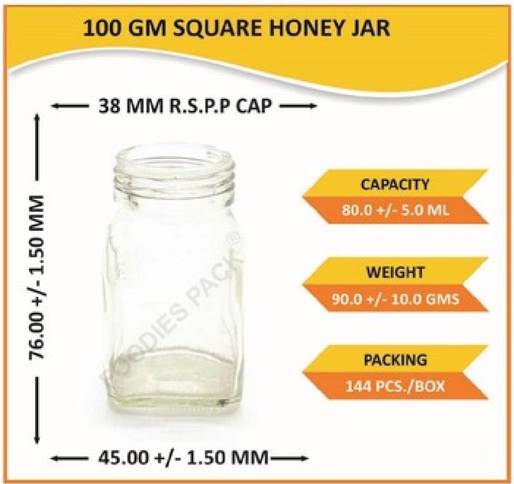 100gm square honey jar