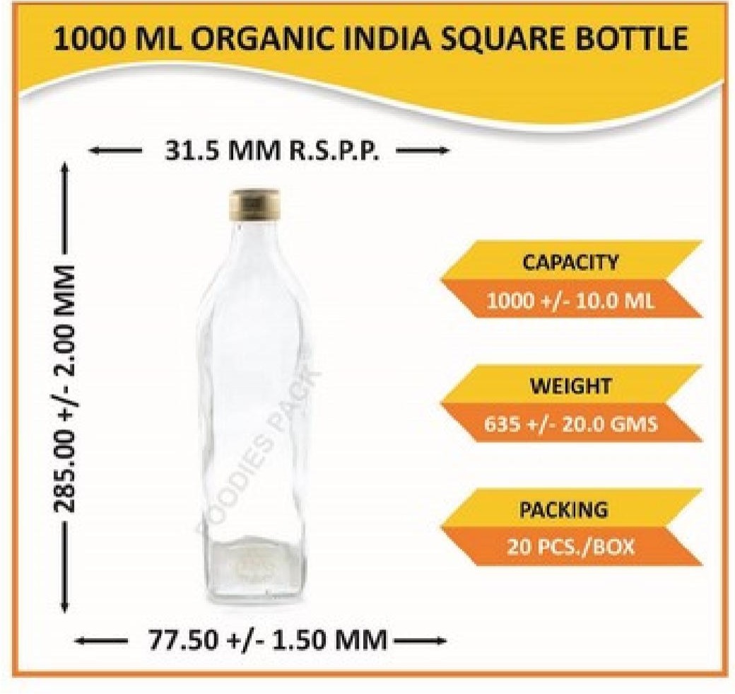 1000ml organic india square bottle